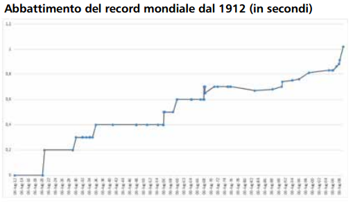 Se si analizzano gli annali dei record sui 100m in atletica potremmo vedere che i tempi sono scesi dai 10”6 (record datato 1912) ai 9”58 (del 2009).