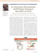 La raccomandazione del 2009 ha avuto l’importante merito di innalzare il livello di con- sapevolezza degli operatori sanitari rispetto al tema della sicurezza del paziente e di favorire l’introduzione di leggi e requisiti specifici per la qualità e la sicurezza. Questi hanno stimolato la costruzione ed il rafforzamento dei sistemi per la gestione del rischio e la sicurezza del paziente nei servizi sanitari nazionali. Tuttavia resta an- cora molto da fare soprattutto sul tema della empowerment del paziente. Per redigere il re- port la Commissione Europea si è basata oltre alle relazioni provenienti dagli stati membri, sull’indagine di Eurobarometer condotta su un campione di quasi 28.000 cittadini europei sulla percezione della qualità e sicurezze delle cure. L’opinione dei cittadini europei sul rischio di su-