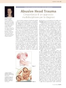Con il termine di Abusive Head Trauma (AHT) si indica una grave forma di abuso sul bambino che rappresenta un’importante causa di morta- lità e disabilità in età pediatrica. È una sindrome caratterizzata da una costellazione di segni e sintomi che in passato venivano inquadranti del- la Shaken Baby Syndrome o sindrome del bam- bino scosso. Si osserva generalmente in bambini sotto l’anno di età quando un genitore o chi si prende cura del piccolo prova a farlo smettere di piangere scuotendolo energicamente tenen- dolo per le braccia e il torace con o senza un impatto diretto del capo su una superficie rigida (Figure 1 e 2). Lo scuotimento determina un’ac- celerazione diversa tra tessuto cerebrale e osso cranico con conseguente abrasione del cervello contro la dura madre fissa all’osso e rottura del- le vene pontine. Le lesioni più frequentemente associate ad AHT sono gli ematomi subdurali, le emorragie subaracnoidee, l’encefalomalacia, l’edema cerebrale, le emorragie retiniche e le fratture scheletriche (in particolare delle ossa lunghe o delle coste posteriori). L’AHT è una causa relativamente comune di neurotrauma