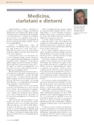 Nell’immaginario collettivo, ciarlataneria e medicina sono territori contigui, specialmente quando la biotecnologia medica appare incapa- ce di mantenere la vantata promessa di garanti- re la salute-benessere e, magari, di sconfiggere anche la morte, e la ciarlataneria finisce col ri- spondere a un bisogno umano insopprimibile di trovare comunque un rimedio, almeno consola- torio, all’inguaribilità.