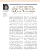 Gli studi che riportano dati di efficacia della Terapia Cognitivo-Comportamentale (TCC) nella sindrome fibromialgica hanno però protocolli di intervento molto eterogenei e difficilmente comparabili; al momento sembrano non es- serci protocolli di intervento mirati su specifici aspetti che caratterizzano il profilo cognitivo dei pazienti fibromialgici, ciò in larga parte sembra dovuto al fatto che le indagini sui profili psicolo- gici di questi pazienti si sono limitate ai disturbi psicologici presenti, come ansia e depressione, molto meno alle variabili cognitive in essi im- plicate.
