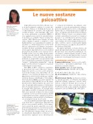 ¯ˉ Negli ultimi anni un fenomeno del tutto nuo- vo ha profondamente cambiato lo scenario del- le sostanze d’abuso, le modalità di mercato ed i comportamenti di consumo. Alle tradizionali sostanze di abuso, come Cannabis, LSD, cocai- na, eroina, amfetamine e soprattutto MDMA, si sono aggiunte nuove molecole, prevalentemen- te di sintesi, le cosiddette “Nuove Sostanze Psi- coattive” (NSP). Queste nuove droghe, in forma solida o liquida, in capsule o compresse o come herbal-mixture, sono generalmente vendute sui siti Web. La commercializzazione on-line delle NSP ha caratteristiche tali (numero teoricamen- te infinito di clienti, anonimato, libertà d’azione, siti di acquisto disponibili 24 ore su 24, facilità di promozione) da rendere il loro mercato incon- trollabile. Inoltre, l’uso e/o l’abuso di tali sostanze non risponde agli elementi costitutivi della tossi- codipendenza, come la tolleranza, dipendenza, astinenza. Le singole NSP sono presentate sulla rete con definizioni accattivanti e fuorvianti come “incenso”, “profumatore ambientale”, “sale da bagno” per disorientare il navigatore occasionale e mimetizzarne la vera natura.