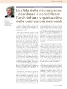 noi siamo l’architettura delle nostre connessio- ni, che è unica in ciascuno di noi e che contie- ne tutte le informazioni riguardanti la nostra identità. In altri termini, la comunità scientifica è convinta che le proprietà del cervello emer- gono dall’architettura organizzativa delle sue connessioni, cioè dal suo diagramma di ca- blaggio e non dalla proprietà dei singoli ele- menti di per sé. Infatti, come per ogni sistema complesso, anche per il cervello le leggi che regolano il comportamento globale del siste- ma non sono deducibili dall’analisi delle leggi che regolano l’attività di ciascuno dei singoli costituenti.