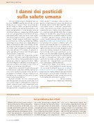 salute umana. È comunque ormai assodato che queste sostanze possono provocare alterazioni di svariati organi e sistemi dell’organismo umano come quello nervoso, endocrino, immunitario, renale. L’esposizione ai pesticidi comporta un in- cremento di cancro, diabete, patologie respirato- rie e cardiovascolari, disturbi della sfera sessuale disfunzioni metaboliche ed ormonali, malattie neurodegenerative e soprattutto danni al cervello.