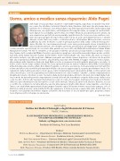 Aldo Pagni ci ha lasciati. Dopo una breve e inarrestabile malattia, sopportata con grande forza d’ani- mo, sereno fino all’ultimo, ha lasciato Maria Pia, Ilaria, Valentina e tanti amici che gli volevano bene e tantissimi che lo stimavano. Con Aldo perdiamo una delle figure più rilevanti della sanità italiana degli ultimi decenni, uno spirito libero, un’intelligenza critica di prim’ordine, un esempio di onestà intellet- tuale. Eppure la sua indubbia autorevolezza era sempre filtrata da una grande passione umana, da una comprensione per tutti, da una inesauribile capacità di ascolto. Forse non era un carattere conci- liante ma sapeva piegarsi alle regole del possibile. Ed era un uomo profondamente buono e amante del bello: ricordo tante sere a teatro o a discutere di arte o di letteratura. Oratore facondo e notevole pubblicista ha scritto moltissimo su tutte le principali questioni della sanità e della deontologia mo- derna. Ma Aldo, tra i suoi innumerevoli meriti, a mio avviso possiede quello di aver sistematizzato in Italia la medicina generale come disciplina autonoma, prevedendone gli sviluppi futuri e disegnandone