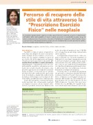 Nel 2015, in Italia, il numero di pazienti vi- venti dopo una diagnosi di cancro (casi preva- lenti) è risultato di circa 3 milioni, con un incre- mento del 17% rispetto al 2010. Il recupero di un corretto stile di vita rappresenta un’esigenza rilevanteperquestapopolazionedipazienti.L’e- sercizio fisico aerobico e contro resistenza, individualizzato e regolarmente svolto nel corso della malattia neoplastica, determina un incre- mento del consumo massimo di ossigeno e rap- presenta oggi un percorso terapeutico universal- mente accettato e riconosciuto per il controllo dei fattori di rischio cardiovascolari, per la ridu- zione di incidenza e gravità della cardiotossicità da farmaci chemioterapici e per la riduzione del- la mortalità e morbilità da cause cardiovascolari.